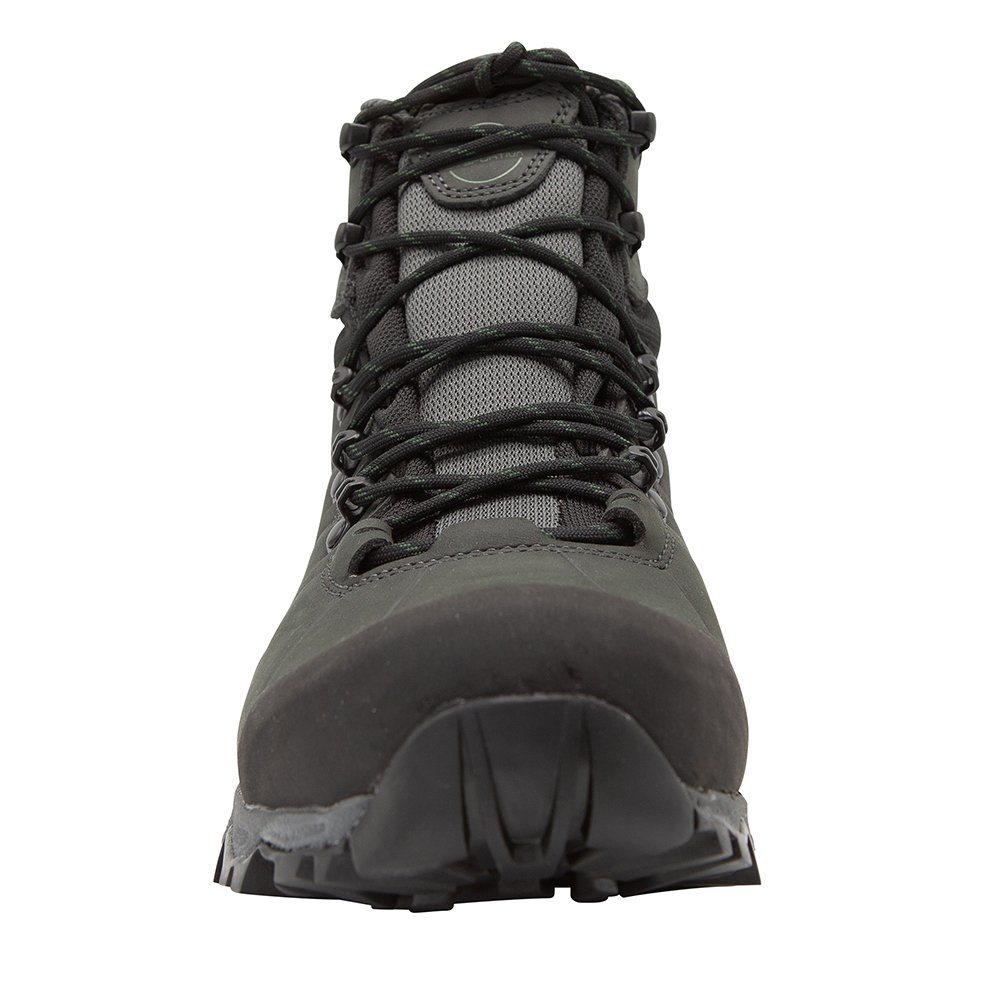 La Sportiva’s Nucleo is a climber’s boot that doubles as a hiker. The rubber rand wraps the toe for protection on scrambles, and the anatomical last respects wide feet rather than tolerating them.